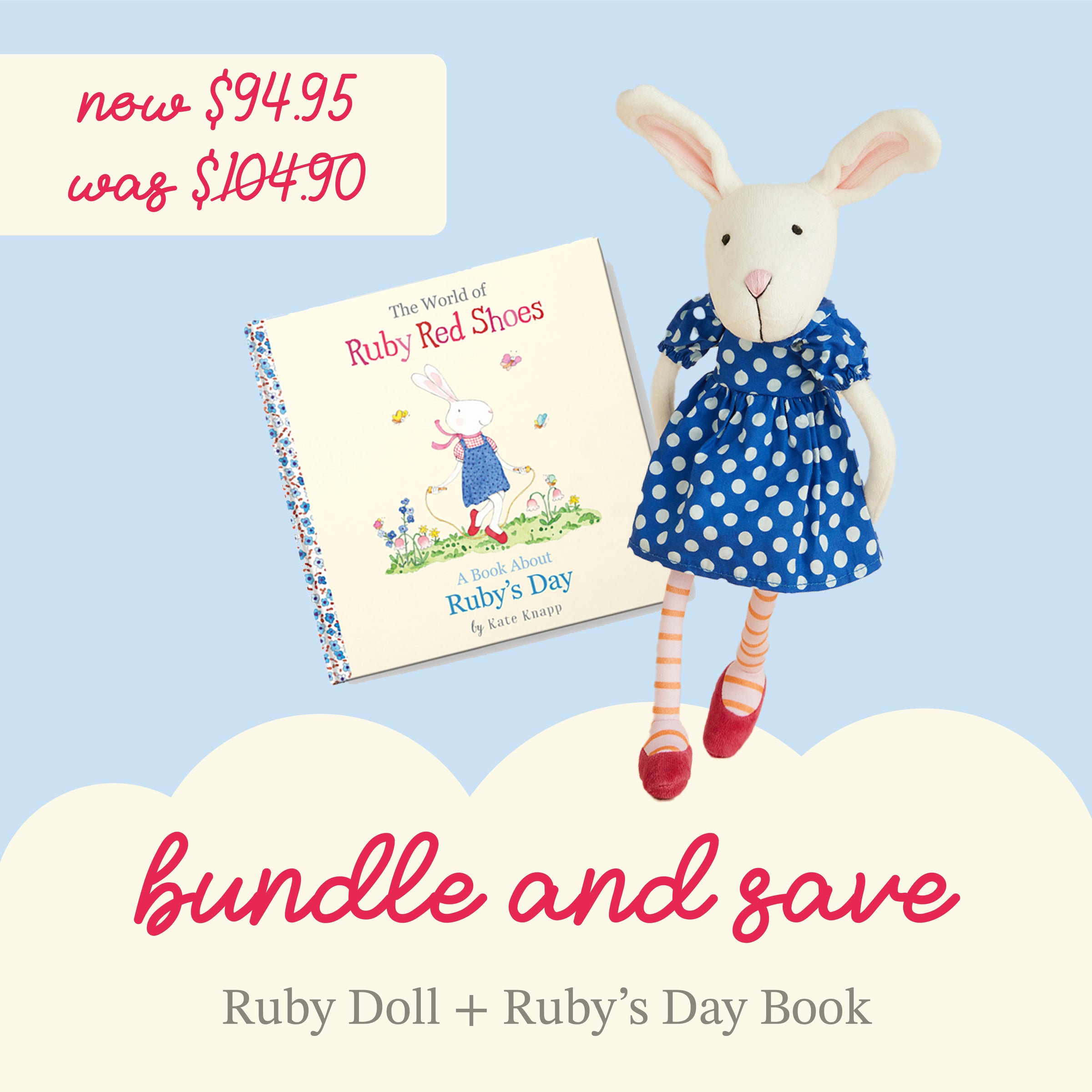 Enjoy our favourite Ruby Red Shoes Organic Plush Toy and the Ruby Red Shoes Book - Rubys Day in a bundle and save.